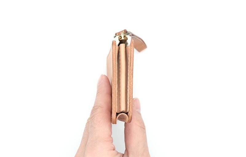 片手に収まるコンパクトなカードコインケースです。ポケットに入れてもかさばらない薄さで、ワンマイルのお出かけや、キャッシュレス財布代わりにも最適です。シンプルな構造は大切なチケットを入れる用途にも使えます。